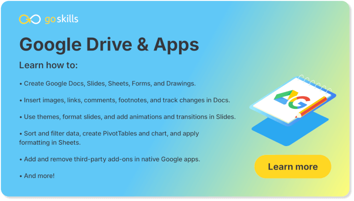 These recommendations are part of GoSkills’ extensive collection of online business courses for teams and business courses for learners. Whether you're focusing on your own growth or helping your employees upskill, the recommendations in this article provide an excellent starting point. Best of all, some of the recommendations below are completely free, and we’ve even included free lessons from paid courses to give you a sneak peek!