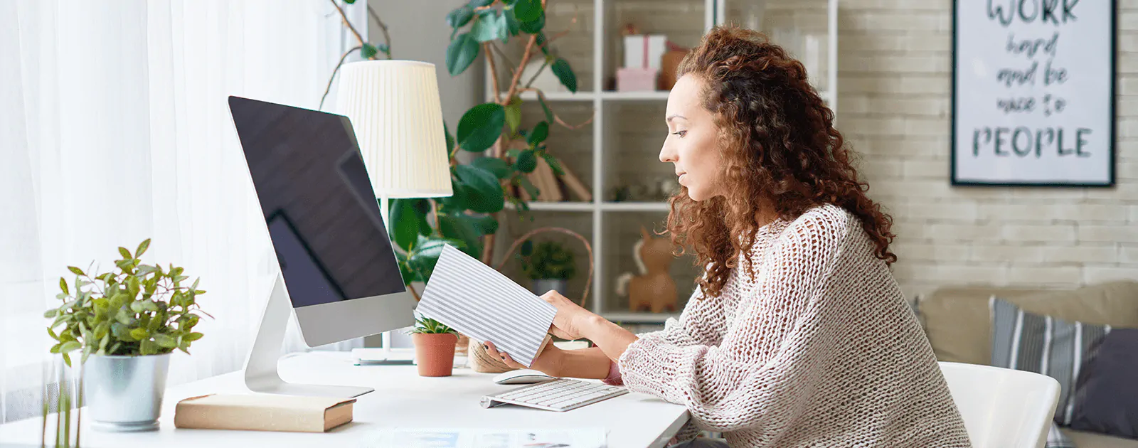 Potted greeneries help purify the air and add refreshing visual accents to a workstation. (Options: Lucky Bamboo, Echeveria Agavoides, Aloe; You might also want to add stylish pots, stands, and planters from The Sill and Ikea)