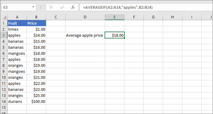 | Syntax | AVERAGEIF(range, criteria, [average_range]) |