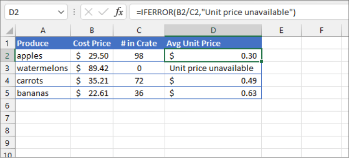 value is the formula or expression that is checked for an error. value_if_error is the value to return if value results in an error. |